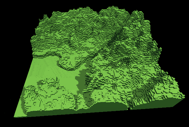 As this is using the same code as my voxel engine, we can get the same result displayed as a voxel world:
