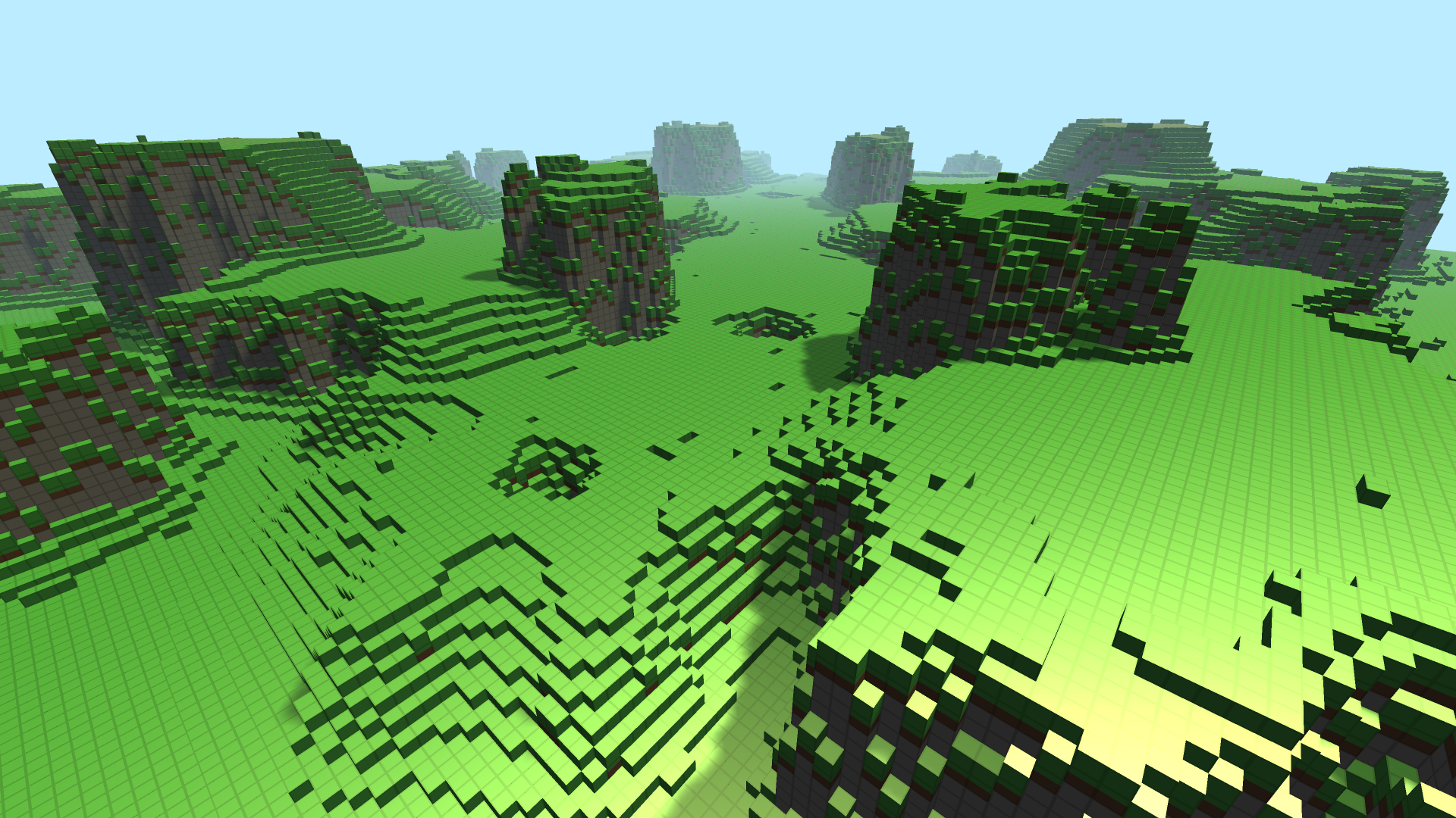 Another thing I worked on is progressive generation. I already had done this for modelling. What I mean by progressive is that a chunk's data or mesh can be created over several steps, which will help the engine maintain a playable frame rate. It's helpful for big worlds and testing as now I don't need to wait for generation to finish before it runs. I just run it and the world builds, still needs optimization though.
